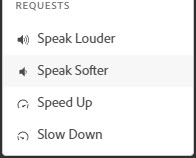 برای درخواستهایی که از سخنران دارید مانند بلندتر صحبت کردن، یا با صدای کمتر صحبت کردن، یا درخواست سریعتر و آرامتر صحبت کردن سخنران هم میتوانید از این منو استفاده کنید.